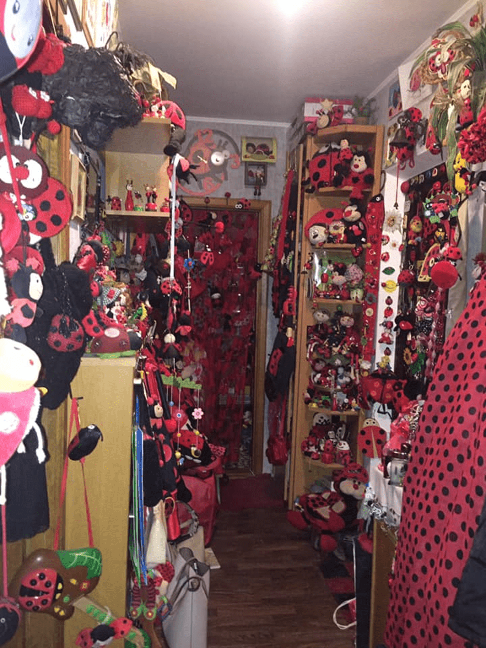 Сама коллекция Надежды размещается в ее квартире: от входной двери, и вплоть до спальни. Даже в столовой и гардеробной есть божьи коровки. Здесь есть и маленькие сувениры, ручные изделия и даже драгоценности с пятнистыми жучками. Женщина сделала себе даже татуировку с этим насекомым.