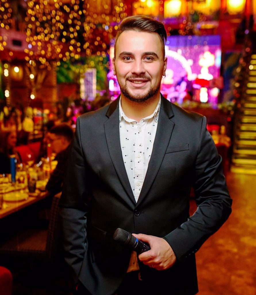 Професійний ведучий, який має свою родзинку — може вести заходи навіть англійською та німецькою мовою. Молодий чоловік вже 14 років працює ведучим, тому має великий досвід у роботі. Сценарист, автор, ведучий, що має досвід роботи на радіо та телебаченні. Вміє проводити новий формат свята — міжнародного весілля. Спеціалізується на корпоративах та весіллях.